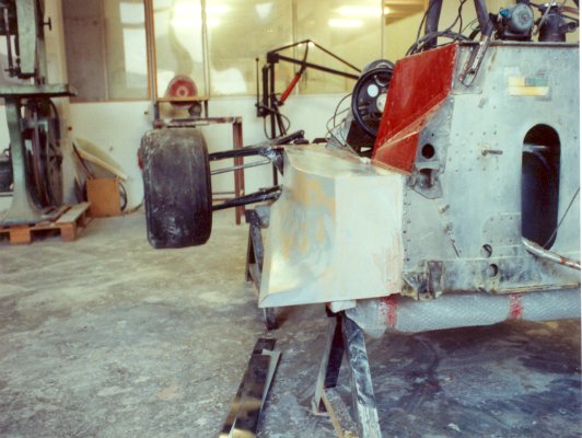 Der Rennwagen sollte in den Originalzustand zurückgebaut werden. Karosserieteile und Flügel wurden nach Fotos und Zeichnungen nachgebaut.